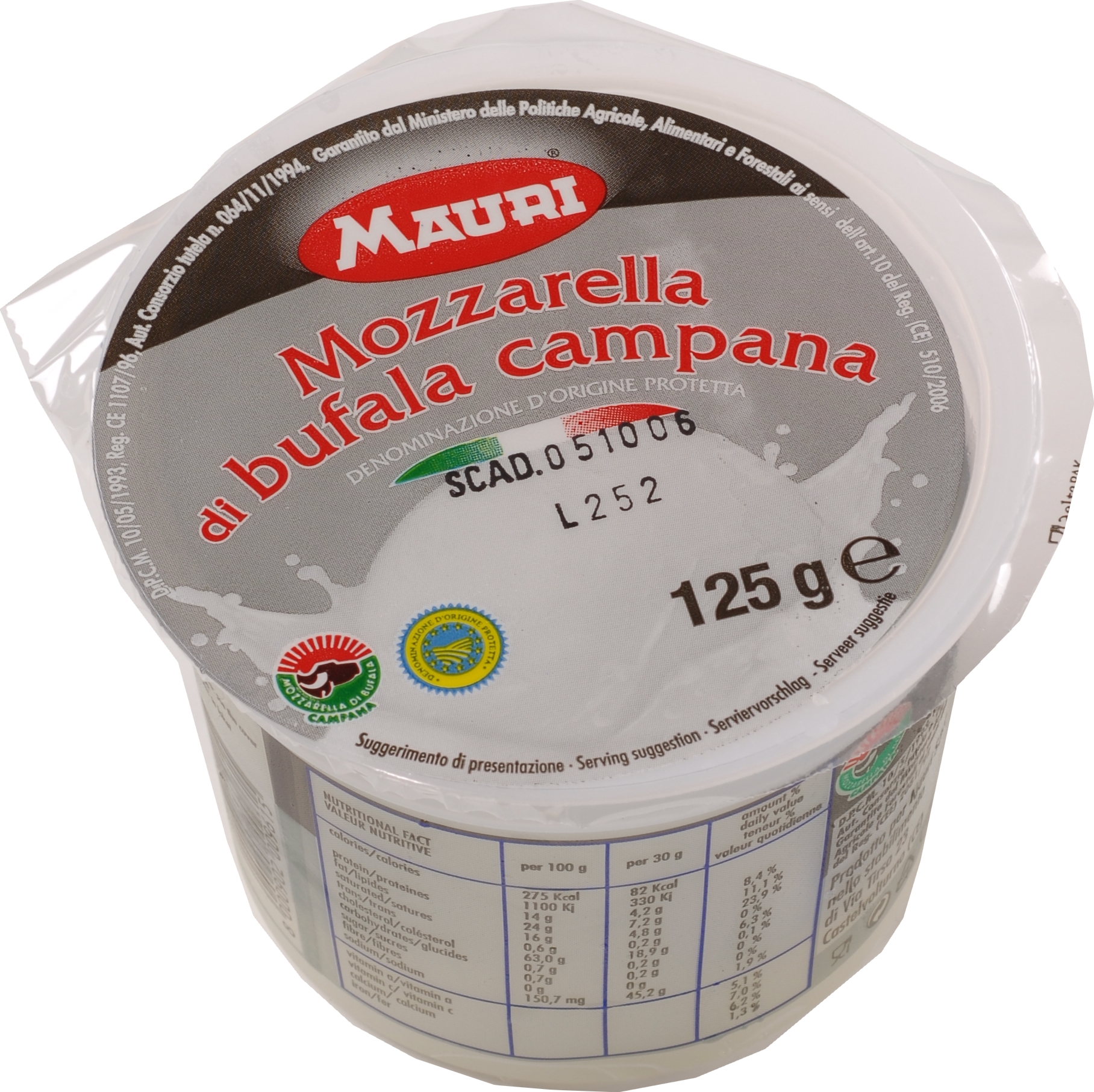 Μπαλάκια μοτσαρέλας 125γρ, απο γάλα βούβαλου, σε κύπελο, μέσα σε νερό, ΠΟΠ